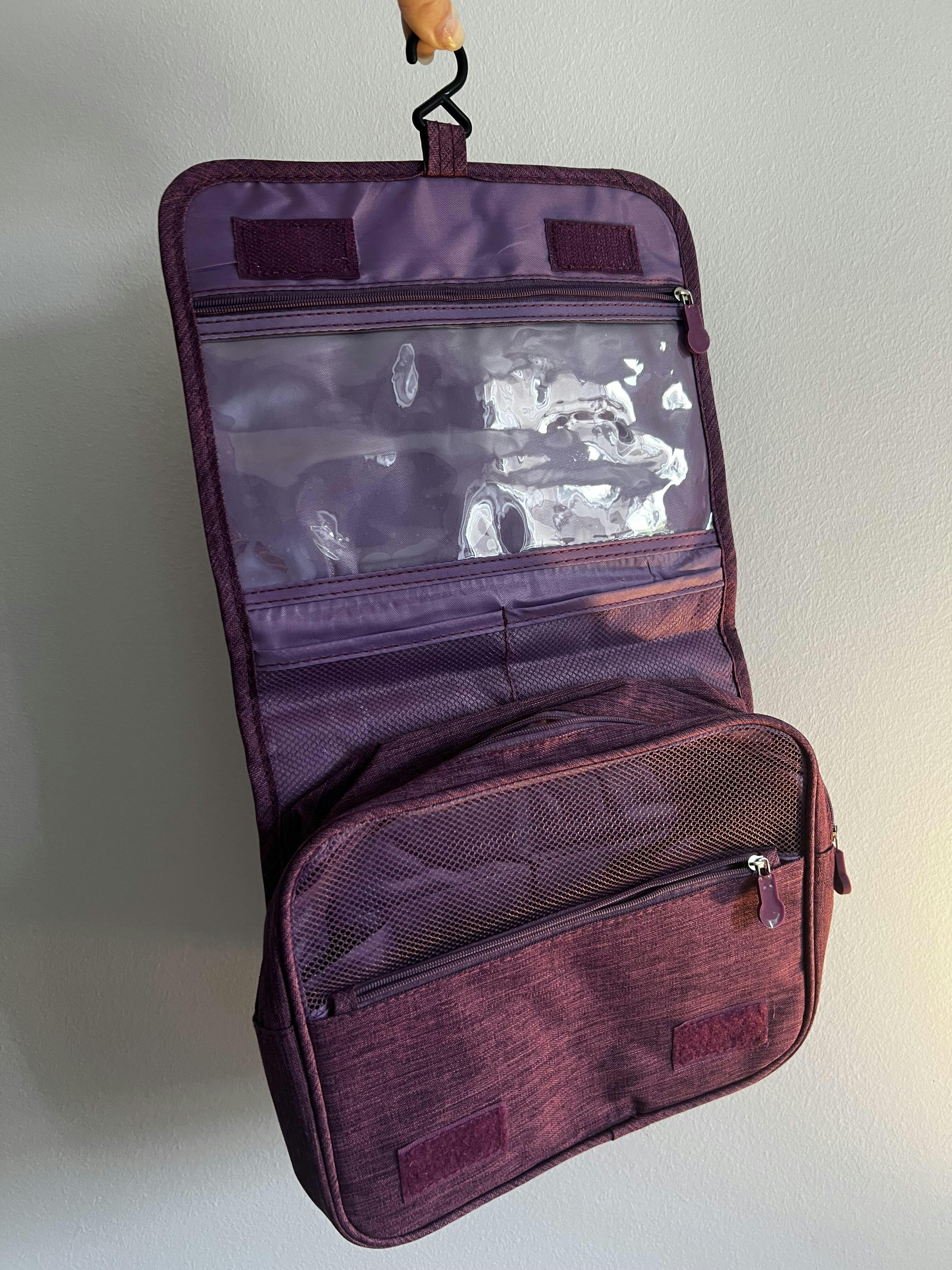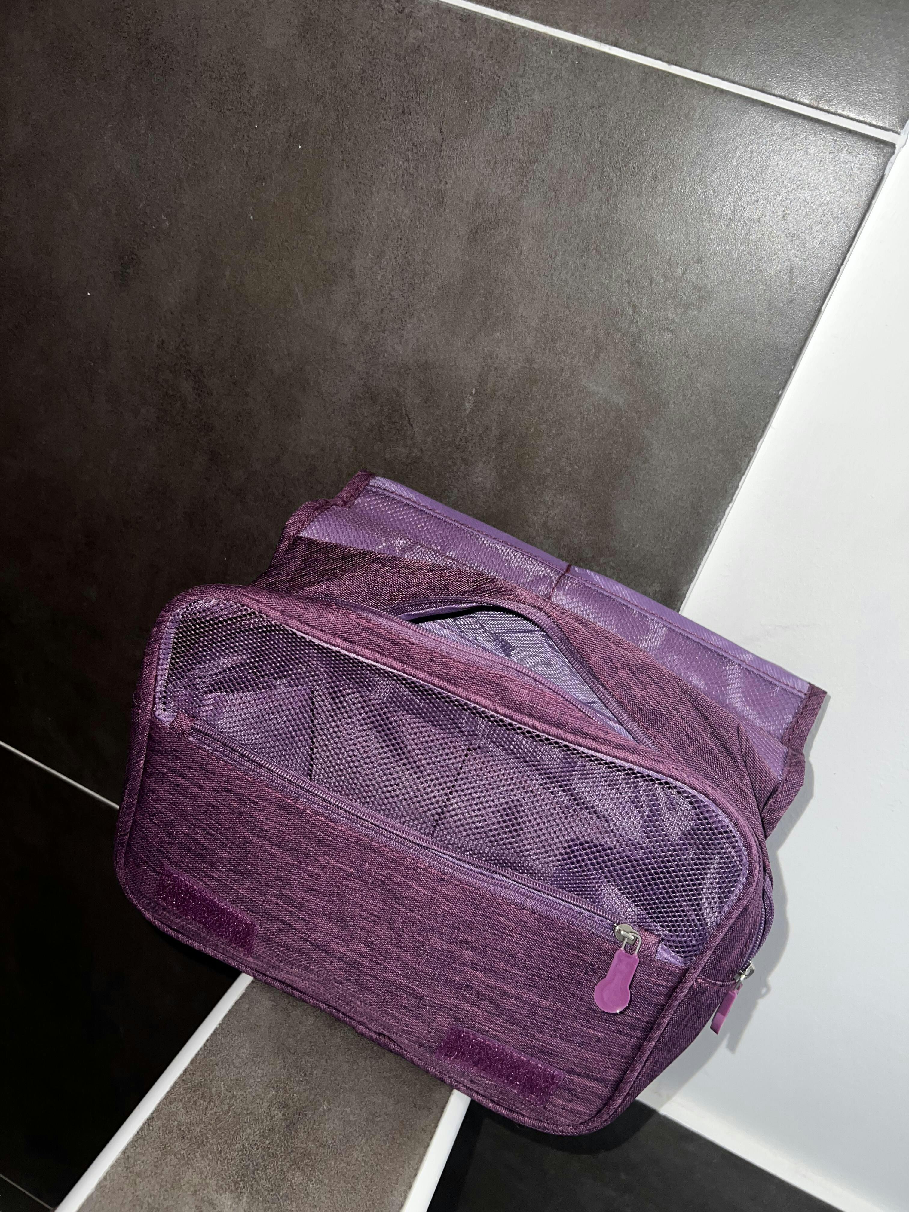 J'ai reçu la trousse de toilette rapidement, dans les délais annoncés. elle est vraiment pratique et de très bonne qualité. Il y a plein de compartiments pour ranger mes affaires, et avec le crochet c'est super pratique ! Franchement, je suis très contente de mon achat, je recommande.